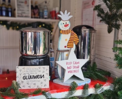 Wie jedes Jahr sind wir mit einer Hütte vertreten. Für den Gaumenschmaus wird es wieder Linsensuppe mit und ohne Worscht sowie Brot dazu geben. Mit Weihnachtsbier, unserem Klassiker Mafioso und weißer Winzer Glühwein halten wir für jeden Geschmack und jedes Wetter die besten Getränke für unsere Gäste parat.